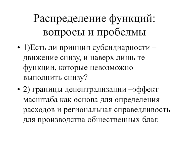 Слайд 14Распределение функций: вопросы и пробелмы