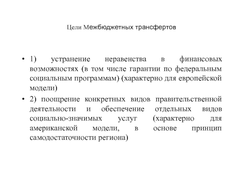 Слайд 16Цели Межбюджетных трансфертов