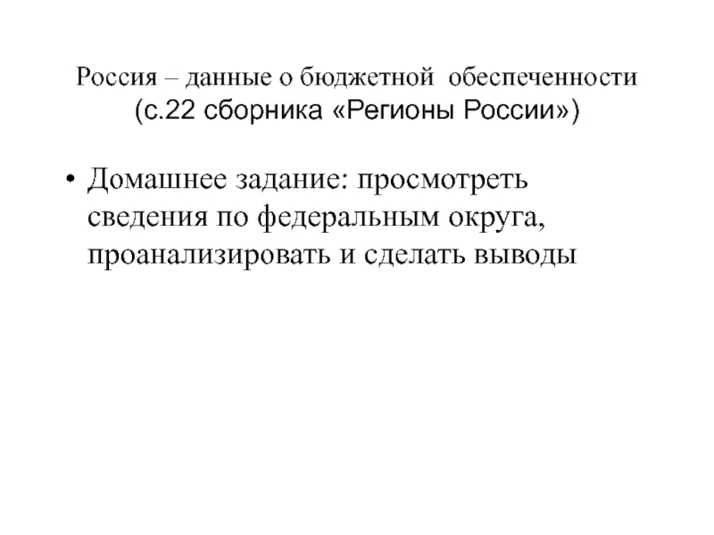 Слайд 36Россия – данные о бюджетной обеспеченности (с.22 сборника «Регионы России»)