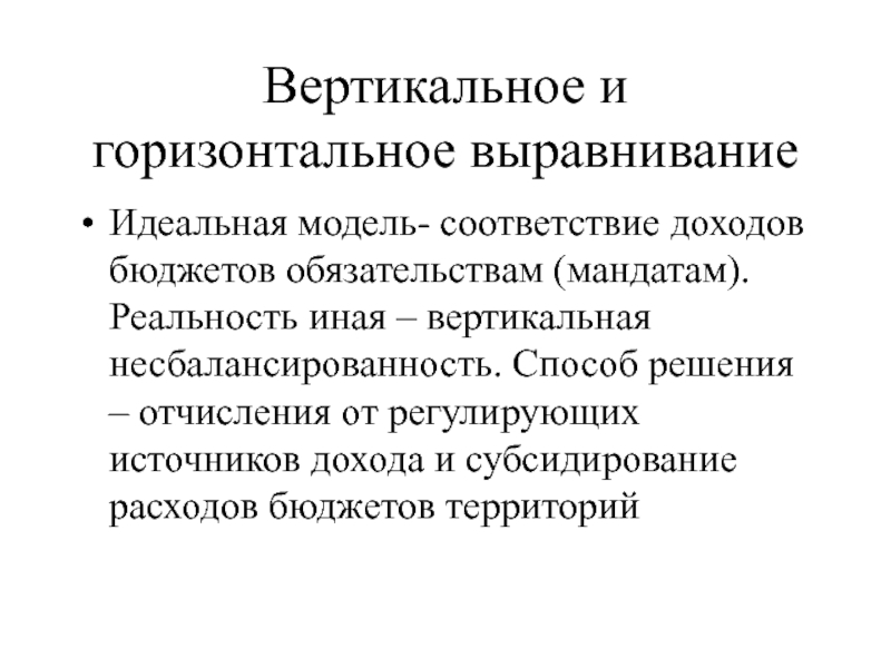 Идеальная модель- соответствие доходов бюджетов обязательствам (мандатам).
