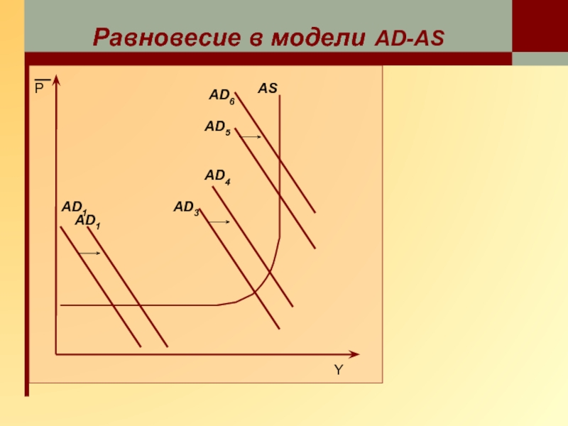 Кривая совокупного спроса (AD) показывает различные реальные объемы выпуска, которые готовы купить потребители, предприятия и правительство при том или ином уровне цен.
