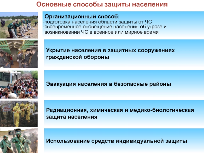 использование средств индивидуальной защиты и защитных свойств техники, транспорта, уцелевших зданий и сооружений.