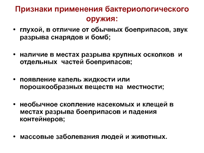 В случае применения противником биологического оружия возможно возникновение значительного количества инфекционных заболеваний.