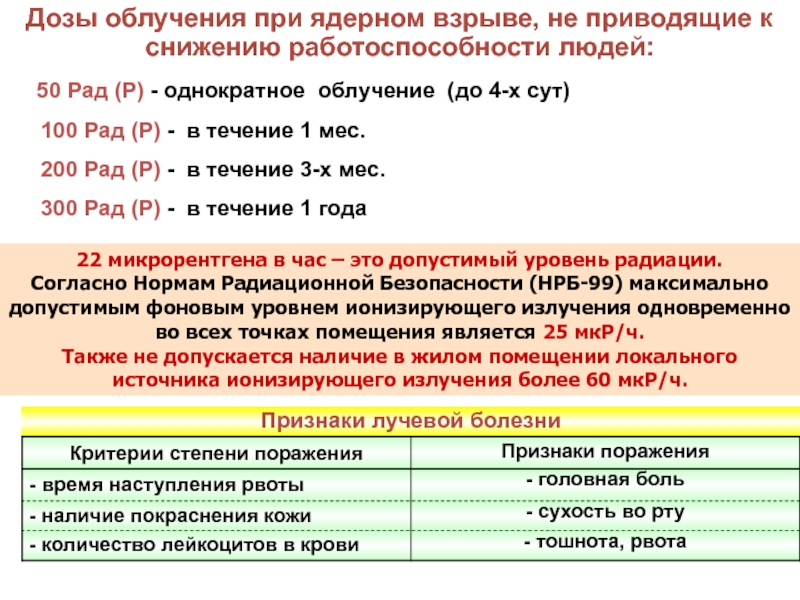 50 Рад (Р) - однократное облучение (до 4-х сут)
