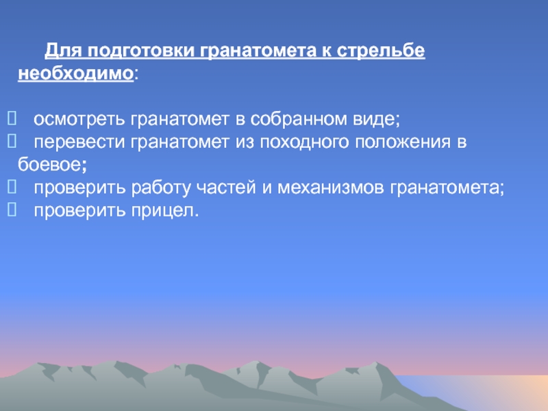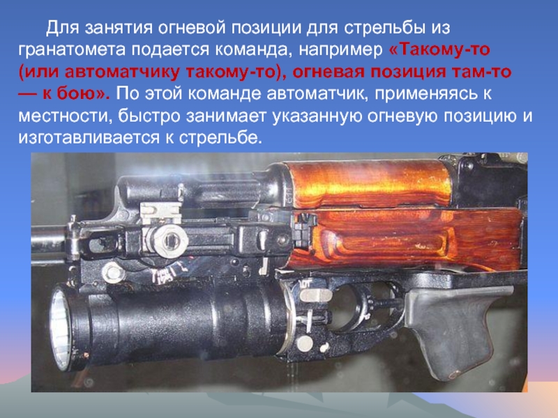 Слайд 33 Для занятия огневой позиции для стрельбы из гранатомета подается команда,