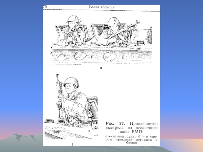 места, с короткой остановки через десантные люки. Для ведения огня автоматчик принимает удобное положение, соблюдая меры безопасности.