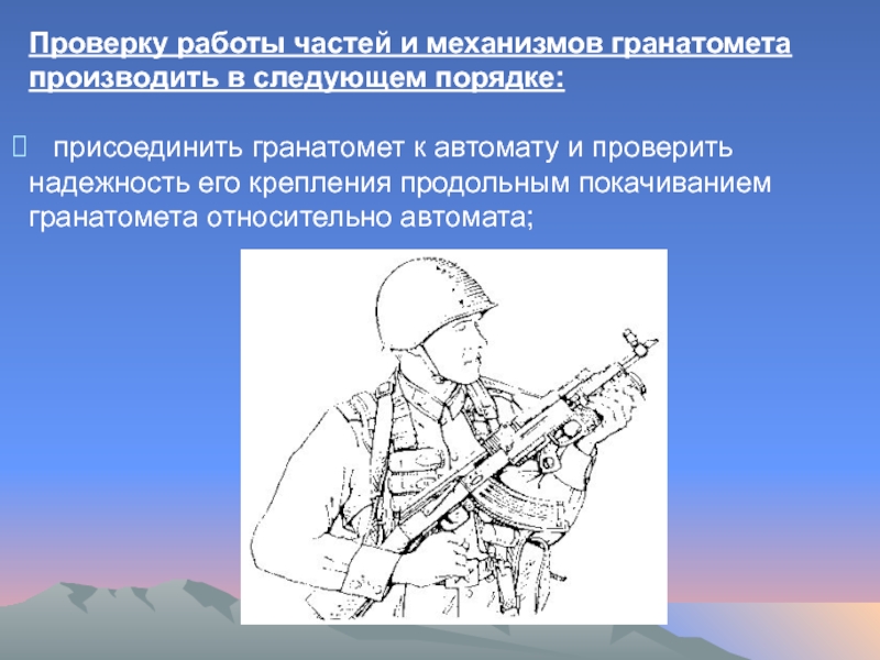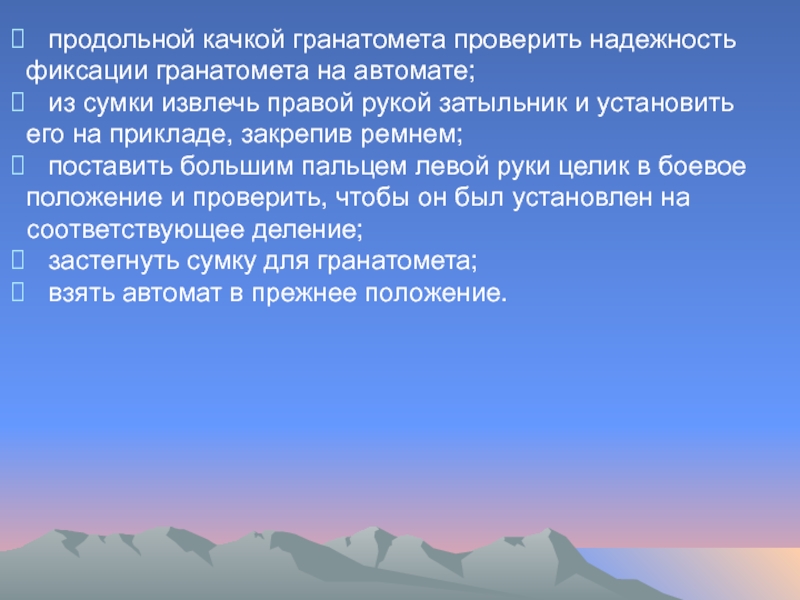 Слайд 21 продольной качкой гранатомета проверить надежность фиксации гранатомета на