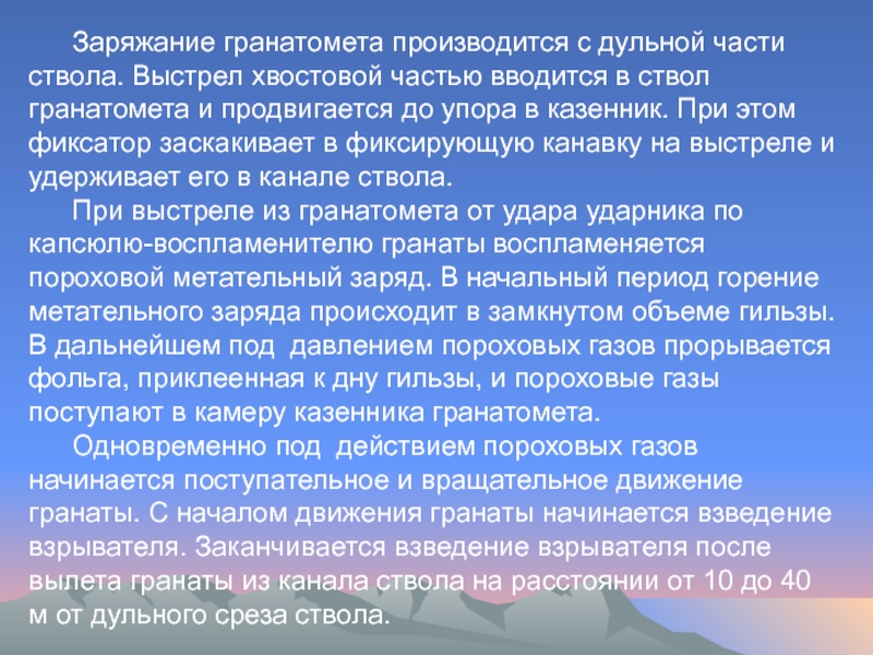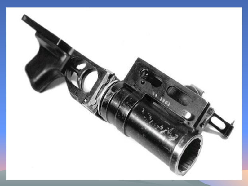 Слайд 8 Заряжание гранатомета производится с дульной части ствола. Выстрел хвостовой частью
