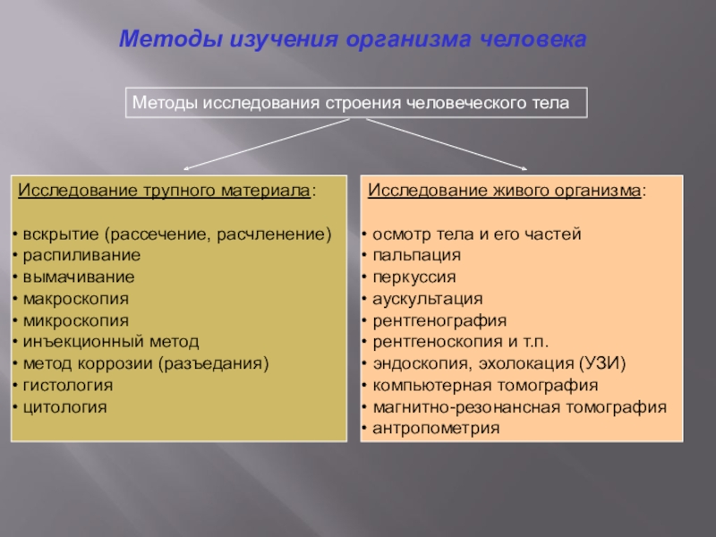 Анатомия изучает внешние формы и пропорции тела человека и его частей, отдельные органы, их конструкцию, микроскопическое строение.