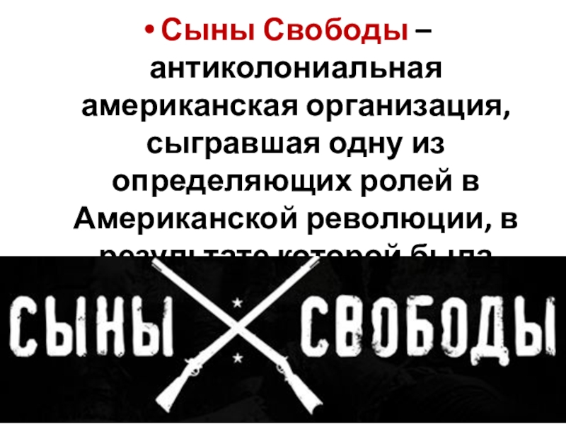 Сыны Свободы – антиколониальная американская организация, сыгравшая одну из определяющих ролей в Американской революции, в результате которой