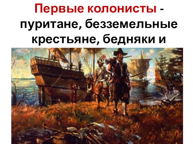 Слайд 3Первые колонисты - пуритане, безземельные крестьяне, бедняки и преступники.