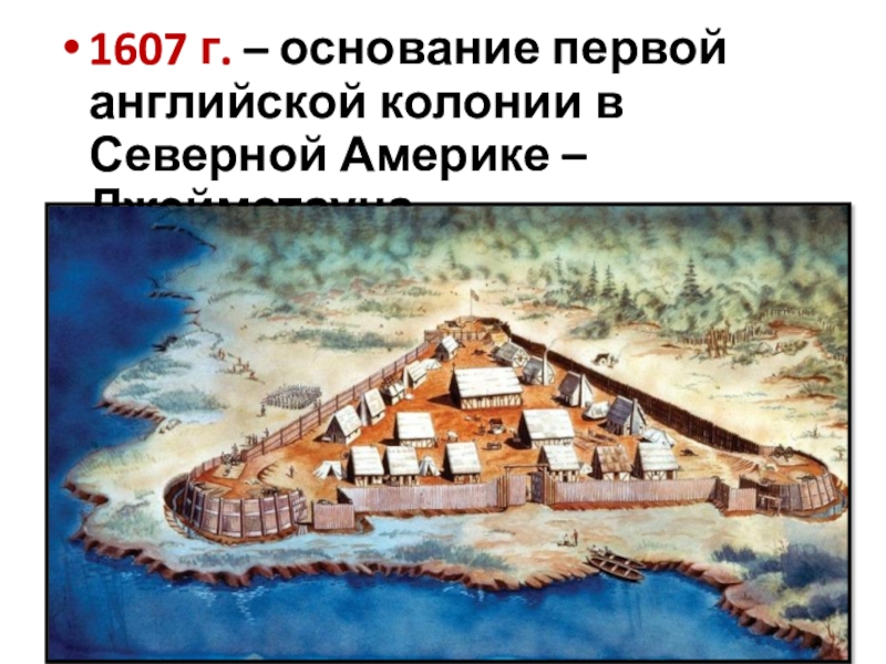 Слайд 21607 г. – основание первой английской колонии в Северной Америке