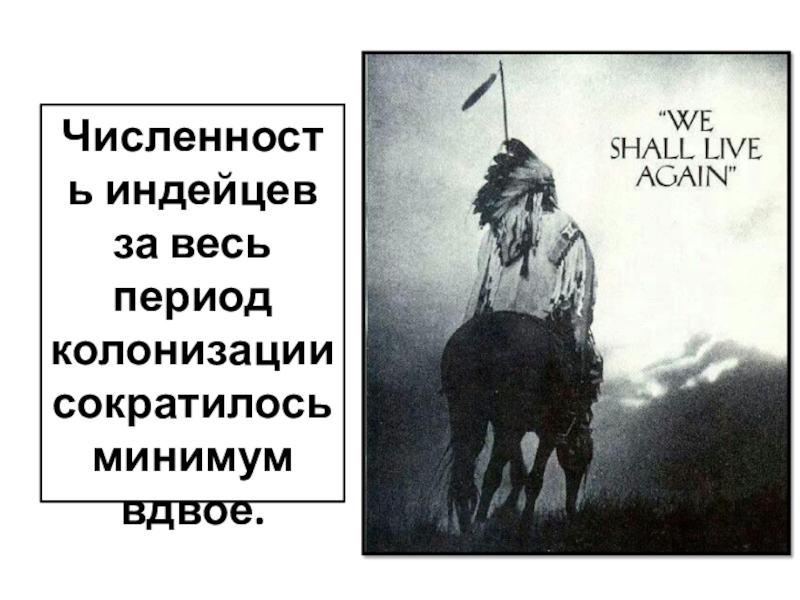 Слайд 6Численность индейцев за весь период колонизации сократилось минимум вдвое.