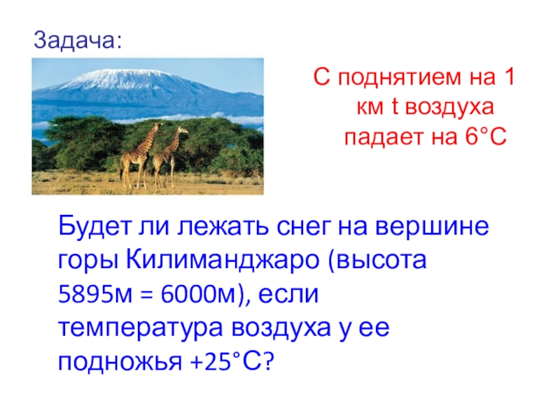 = 6000м), если температура воздуха у ее подножья +25°С?