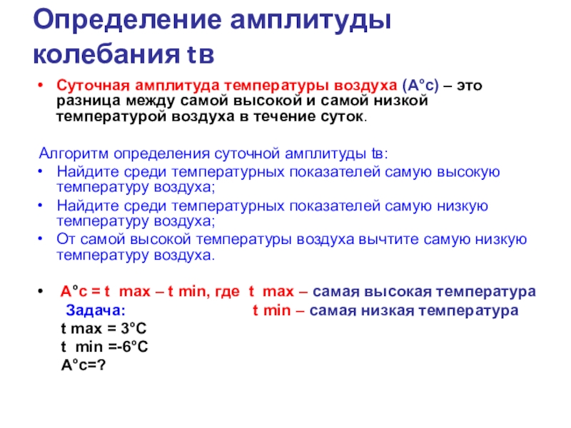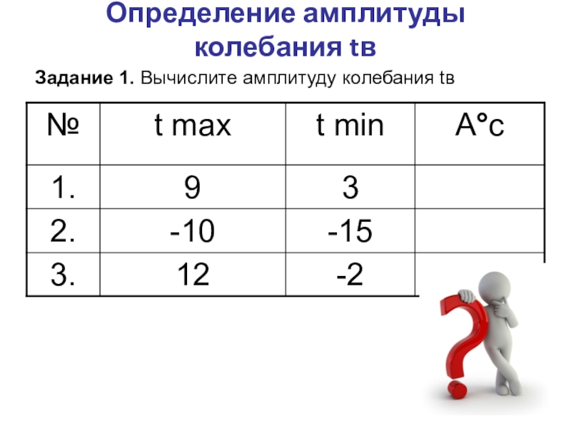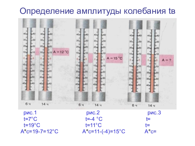 Слайд 14Определение температуры воздуха, амплитуды колебания температуры