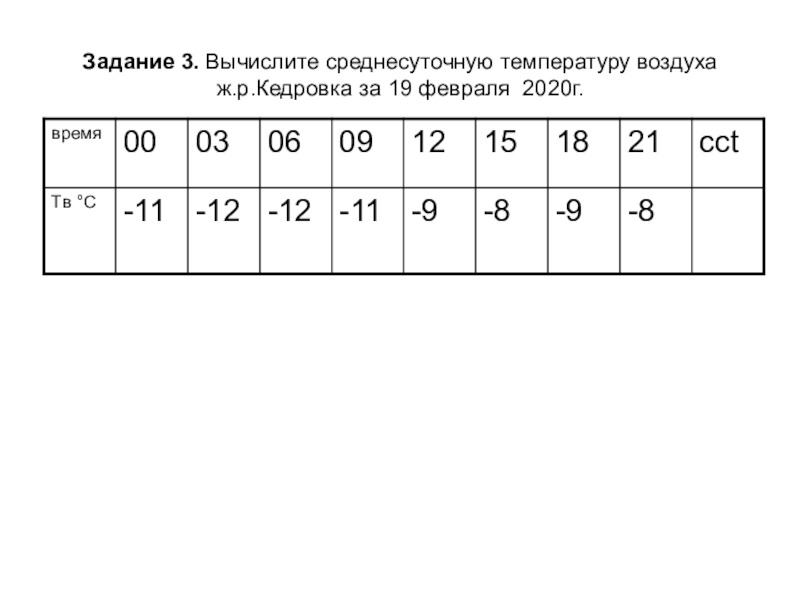 Слайд 23Задание 3. Вычислите среднесуточную температуру воздуха
