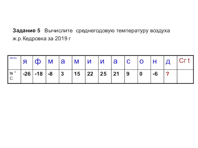 Задание 5 Вычислите среднегодовую температуру воздуха