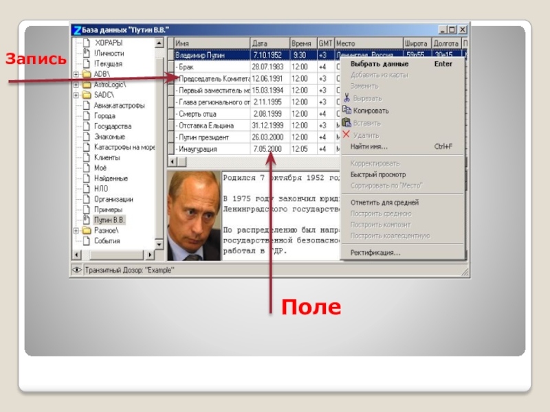 Тема: База данных (БД) и система управления базами данных (СУБД)