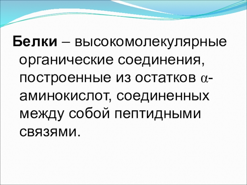 Слайд 2Белки – высокомолекулярные органические соединения, построенные из остатков α- аминокислот,