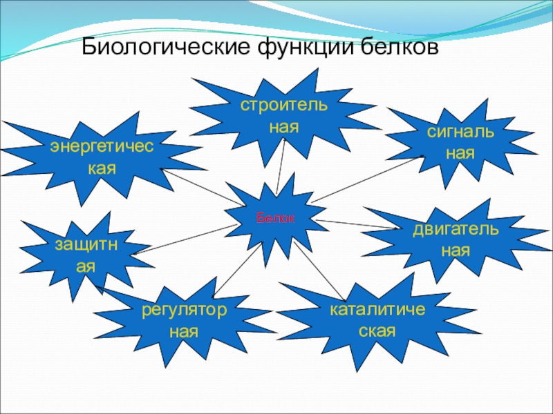 Биологические функции белковБелокэнергетическаязащитнаядвигательнаястроительнаякаталитическаясигнальнаярегуляторная