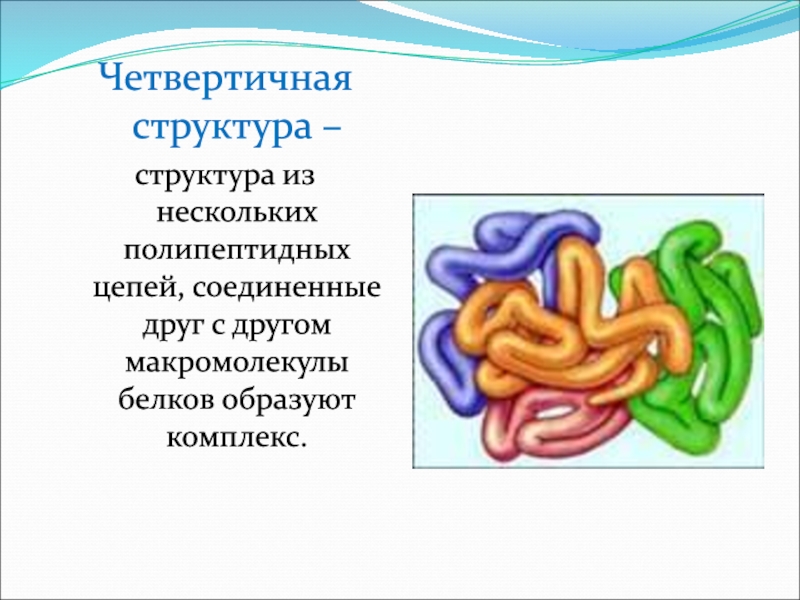 Четвертичная структура – структура из нескольких полипептидных цепей, соединенные друг с другом макромолекулы белков образуют комплекс.