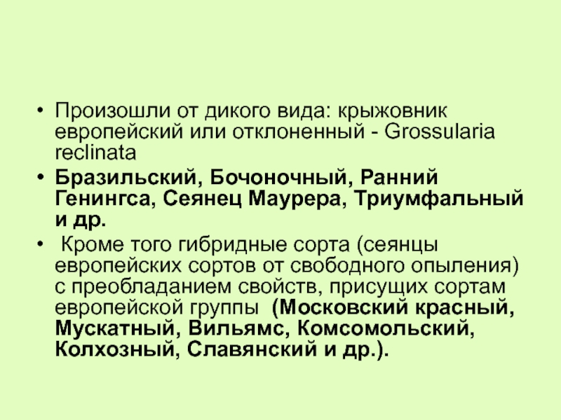 Слайд 4Произошли от дикого вида: крыжовник европейский или отклоненный - Grossularia