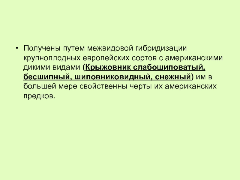 Слайд 15Получены путем межвидовой гибридизации крупноплодных европейских сортов с американскими дикими