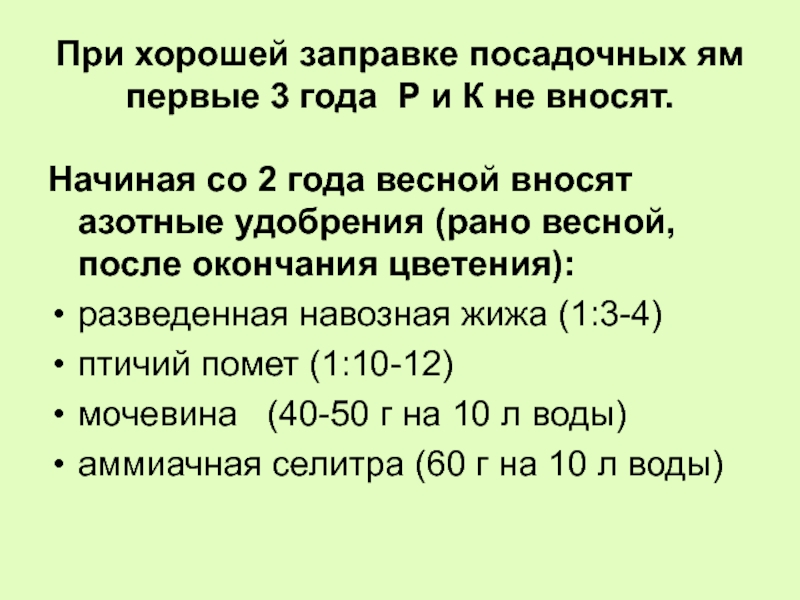 Слайд 26При хорошей заправке посадочных ям первые 3 года Р и