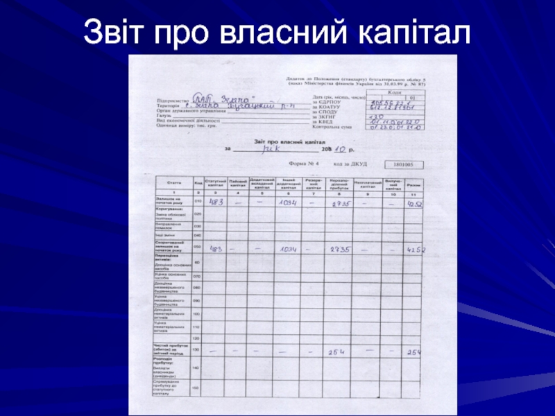 Звіт про власний капітал – звіт, який відображає зміни у складі власного капіталу підприємства протягом звітного періоду.