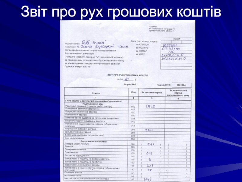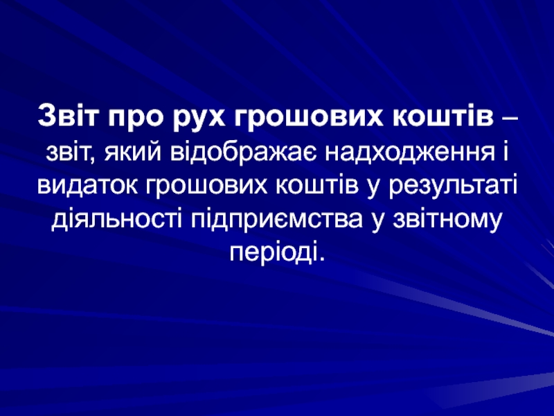 Слайд 14Звіт про рух грошових коштів – звіт, який відображає надходження