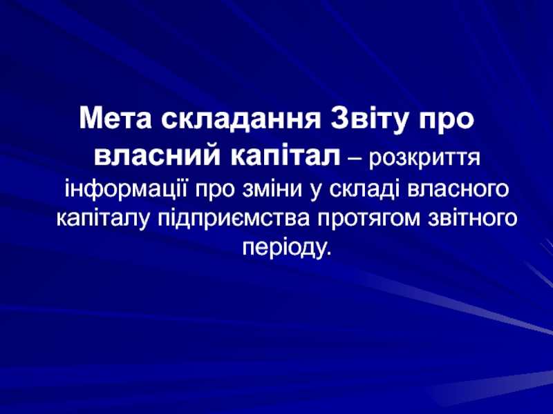 Слайд 21Мета складання Звіту про власний капітал – розкриття інформації про
