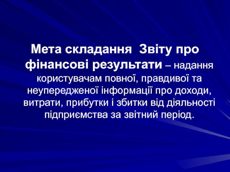 Слайд 13Мета складання Звіту про фінансові результати – надання користувачам повної,