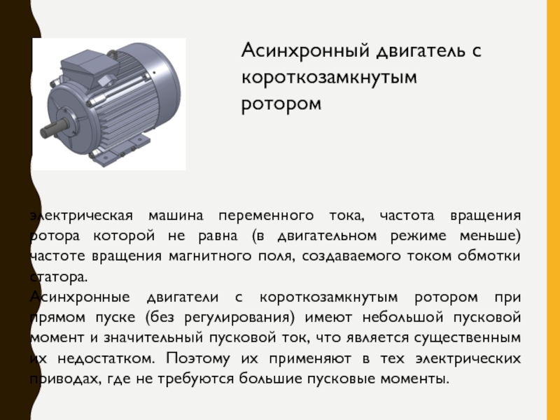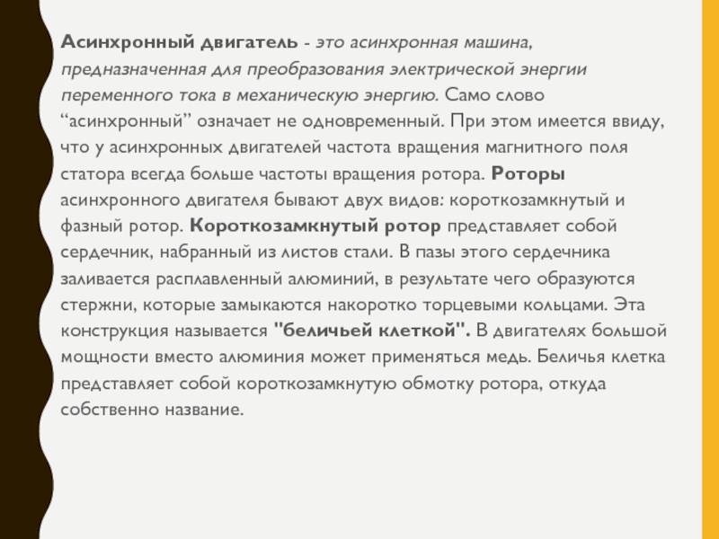 Слайд 2Асинхронный двигатель - это асинхронная машина, предназначенная для преобразования электрической