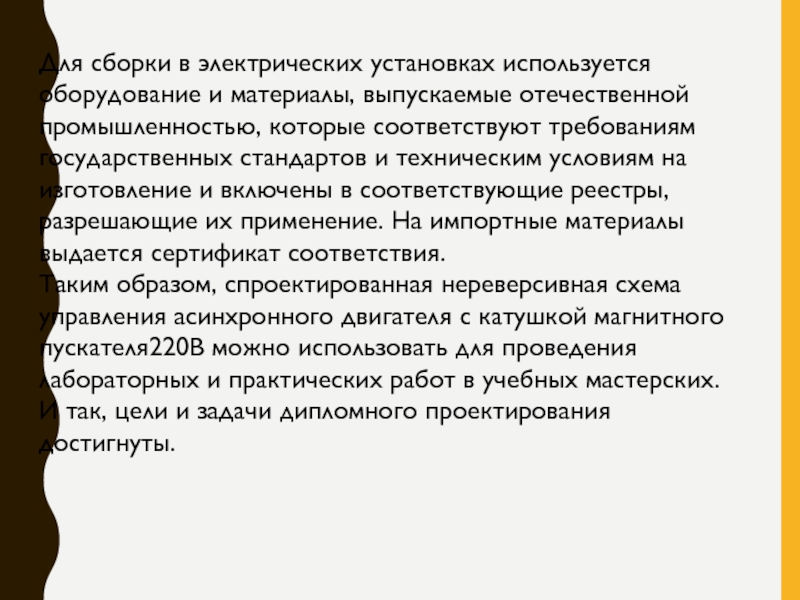 Слайд 16Для сборки в электрических установках используется оборудование и материалы, выпускаемые