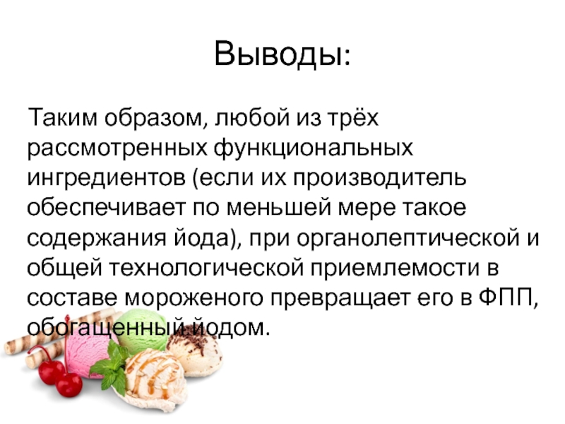 при органолептической и общей технологической приемлемости в составе мороженого превращает его в ФПП, обогащенный йодом.