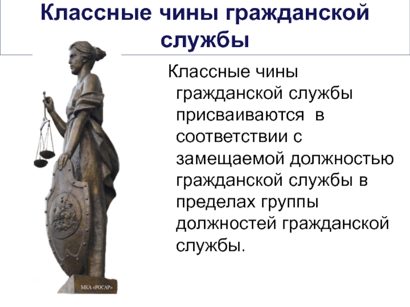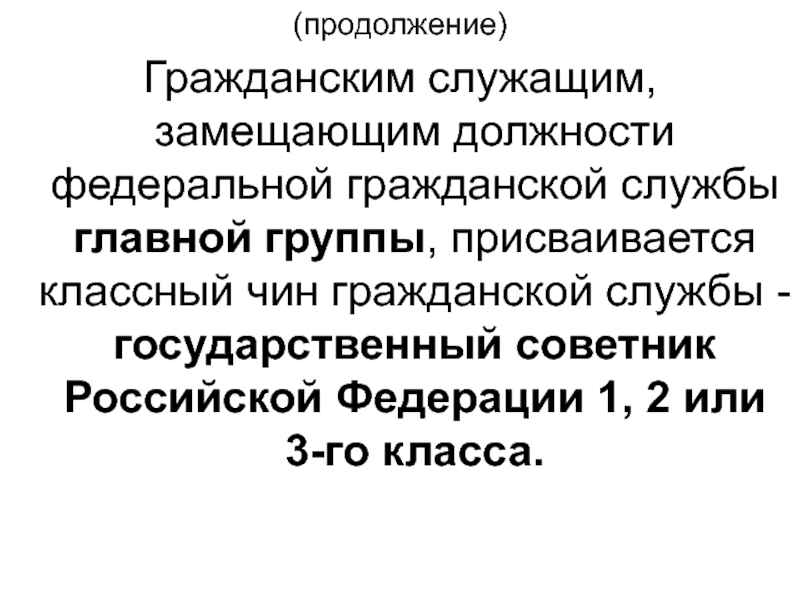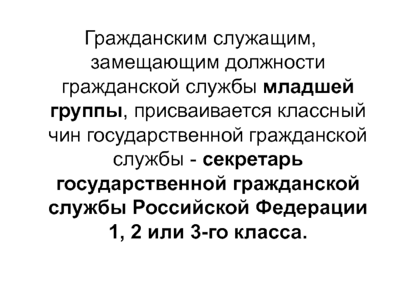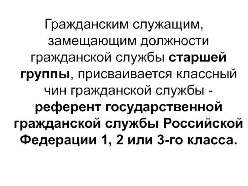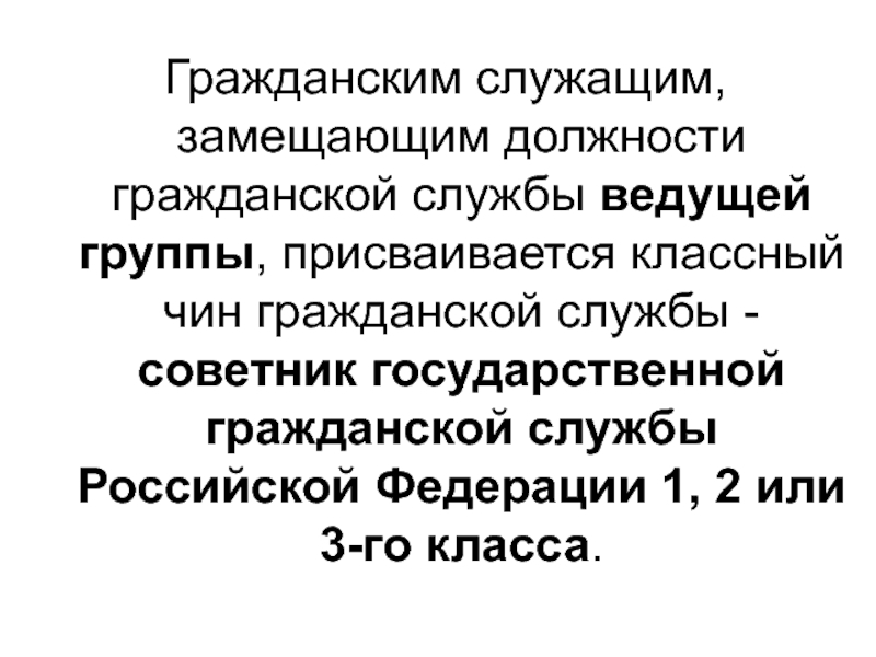 Слайд 26Гражданским служащим, замещающим должности гражданской службы ведущей группы, присваивается классный