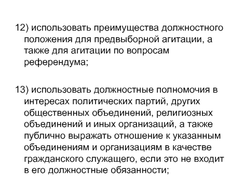 Слайд 8112) использовать преимущества должностного положения для предвыборной агитации, а также