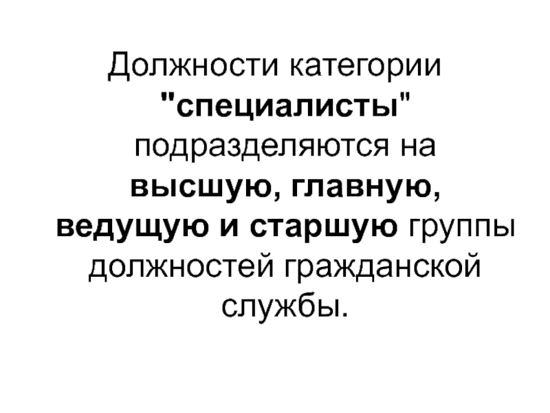 Слайд 20Должности категории "специалисты" подразделяются на высшую, главную, ведущую и старшую