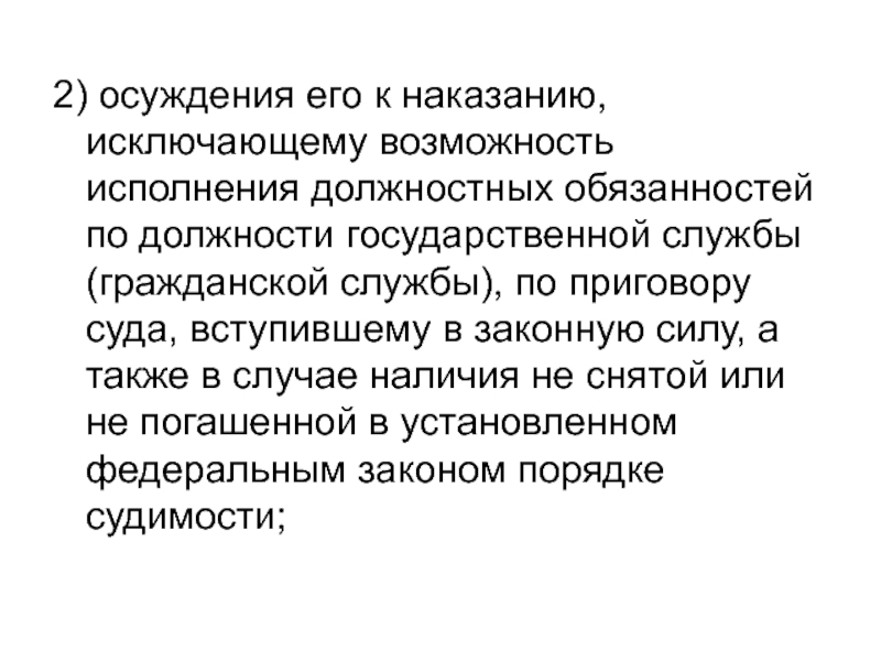 Слайд 662) осуждения его к наказанию, исключающему возможность исполнения должностных обязанностей