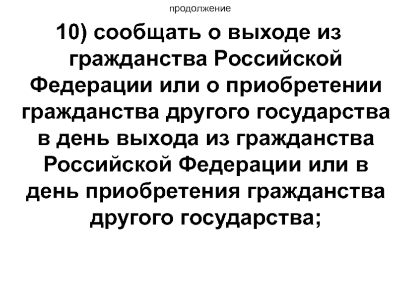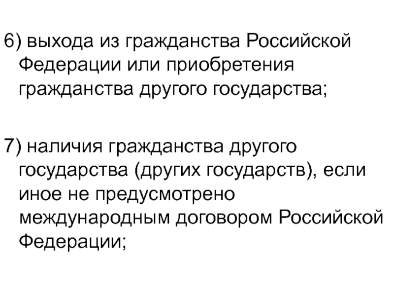 Слайд 706) выхода из гражданства Российской Федерации или приобретения гражданства другого