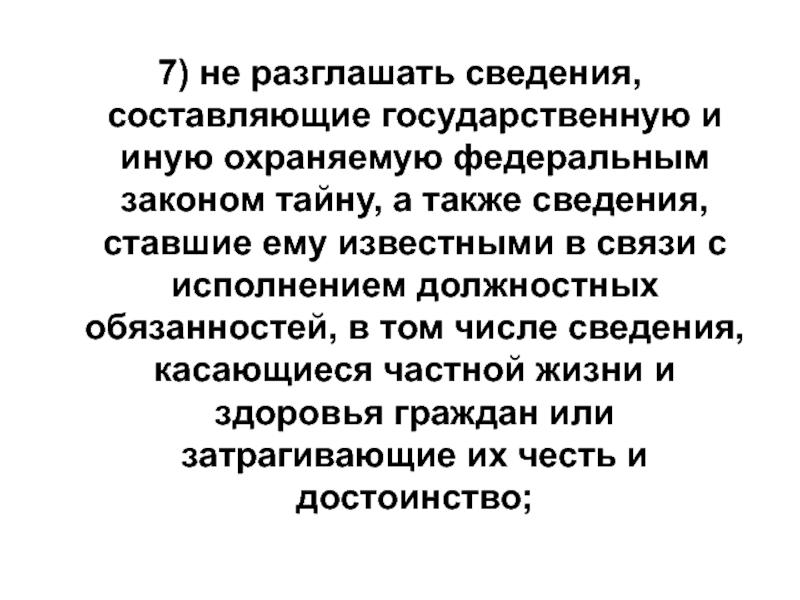 государственную и иную охраняемую федеральным законом тайну, если исполнение должностных