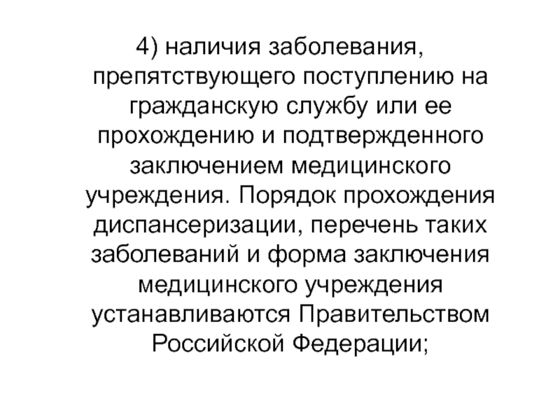 Слайд 684) наличия заболевания, препятствующего поступлению на гражданскую службу или ее