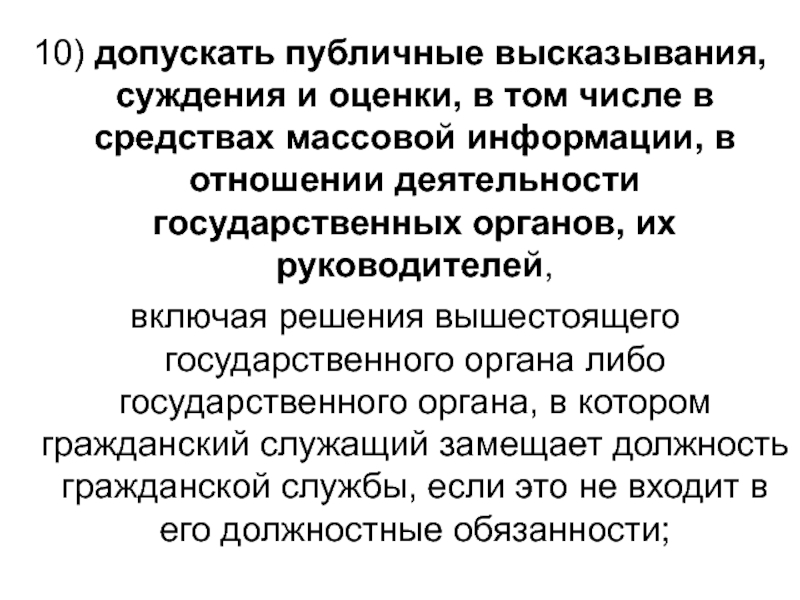 Слайд 7910) допускать публичные высказывания, суждения и оценки, в том числе