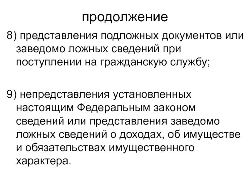 8) представления подложных документов или заведомо ложных сведений при поступлении