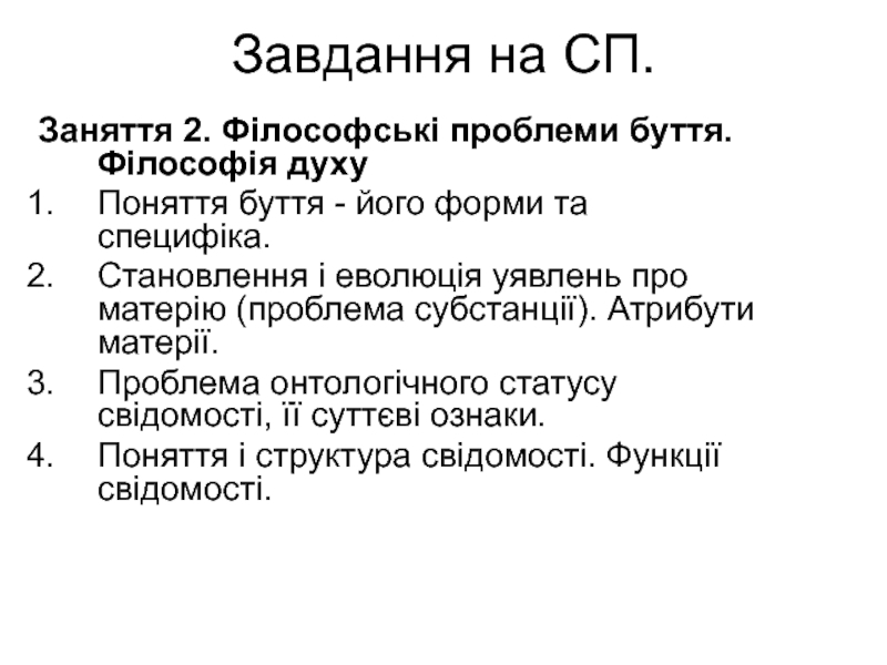 Заняття 2. Філософські проблеми буття. Філософія духу