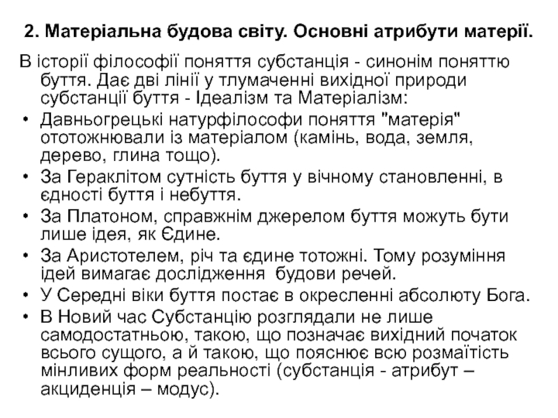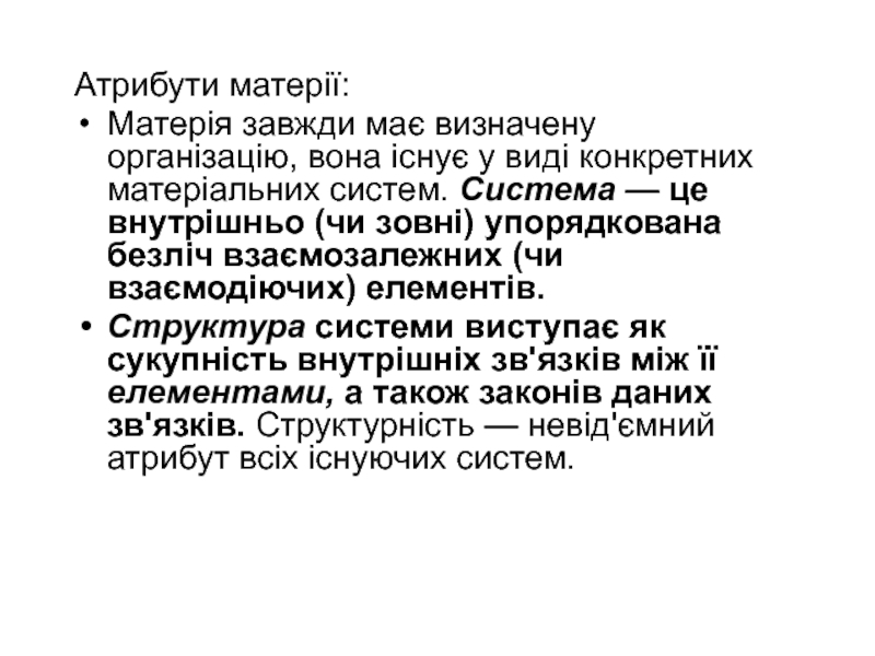 Слайд 72. Матеріальна будова світу. Основні атрибути матерії.