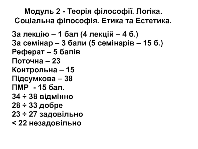 Слайд 24Модуль 2 - Теорія філософії. Логіка. Соціальна філософія. Етика та