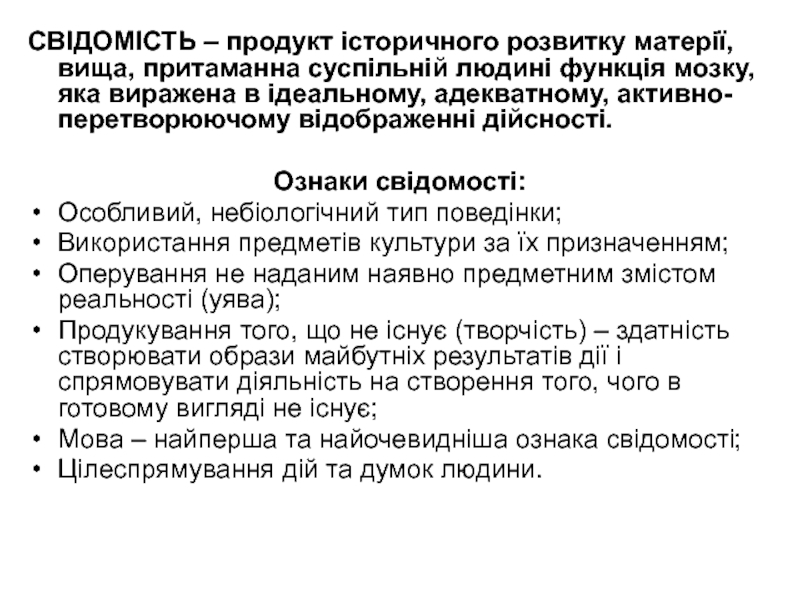 Слайд 16СВІДОМІСТЬ – продукт історичного розвитку матерії, вища, притаманна суспільній людині