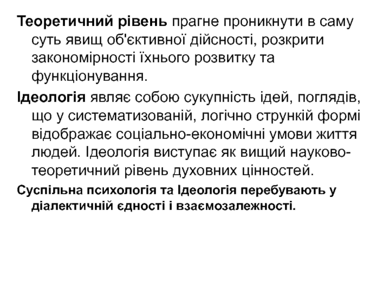 Слайд 22Теоретичний рівень прагне проникнути в саму суть явищ об'єктивної дійсності,