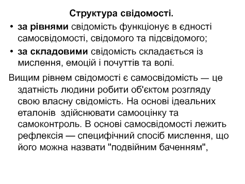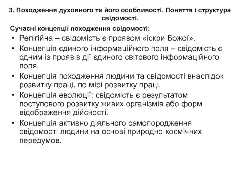 Слайд 143. Походження духовного та його особливості. Поняття і структура свідомості.